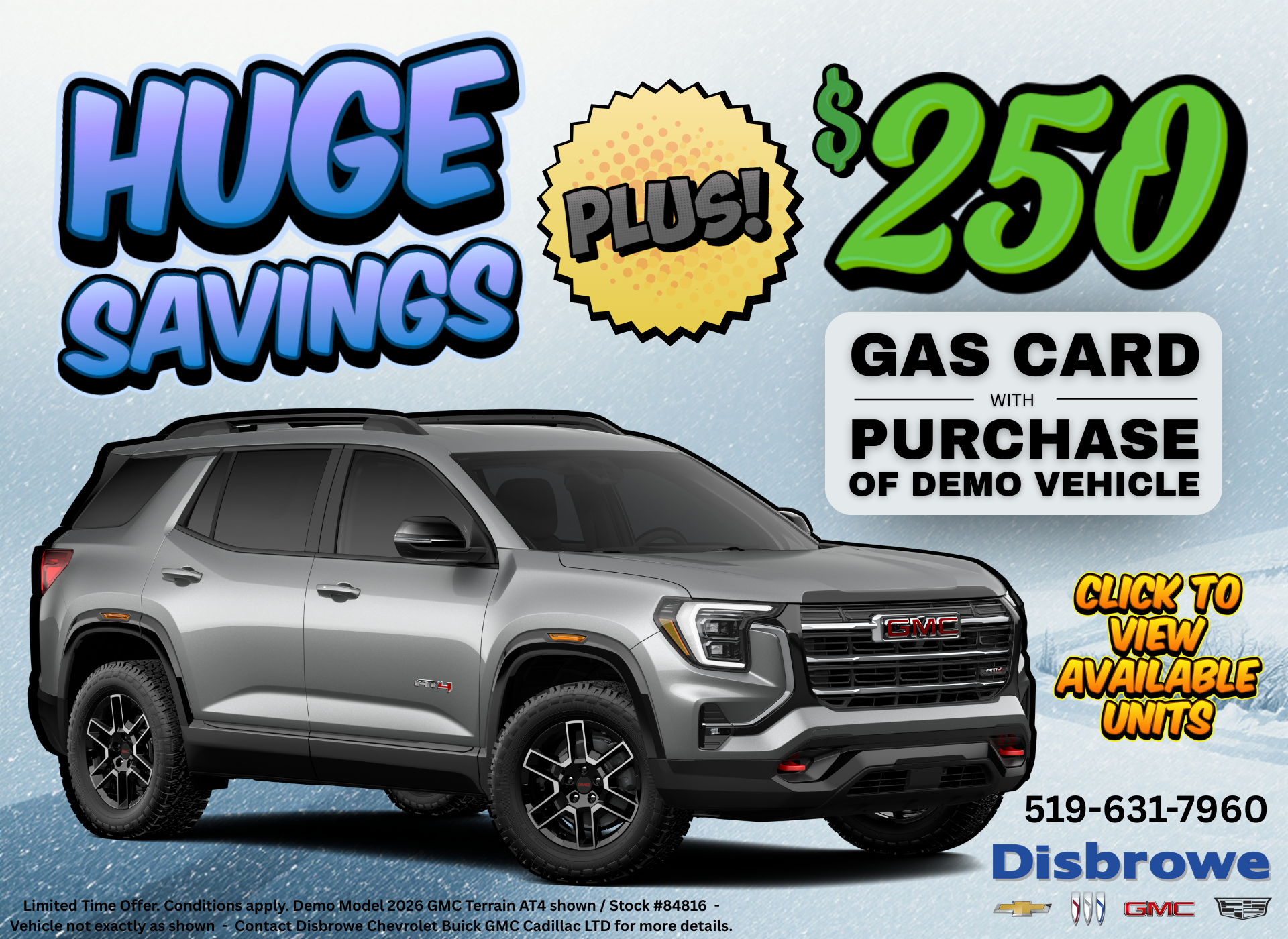 Disclaimer: Finance and Lease offers on approved credit. Regional offers, lease and finance conditions apply. See your local GMC dealer for more information. Use of any calculation and/or tools on https:disbrowe.com does not constitute an offer of direct financing or any particular lease, finance, purchase option or transaction. Calculation and tools are intended for illustrative purposes only. Rates and requirements may vary depending on credit worthiness. Every effort is made to ensure the accuracy of the content on the pages on https:disbrowe.com. In the event of a discrepancy, error or omission, vehicle prices, offers and features as established by GM Canada and participating GMC dealers in Canada, will prevail.